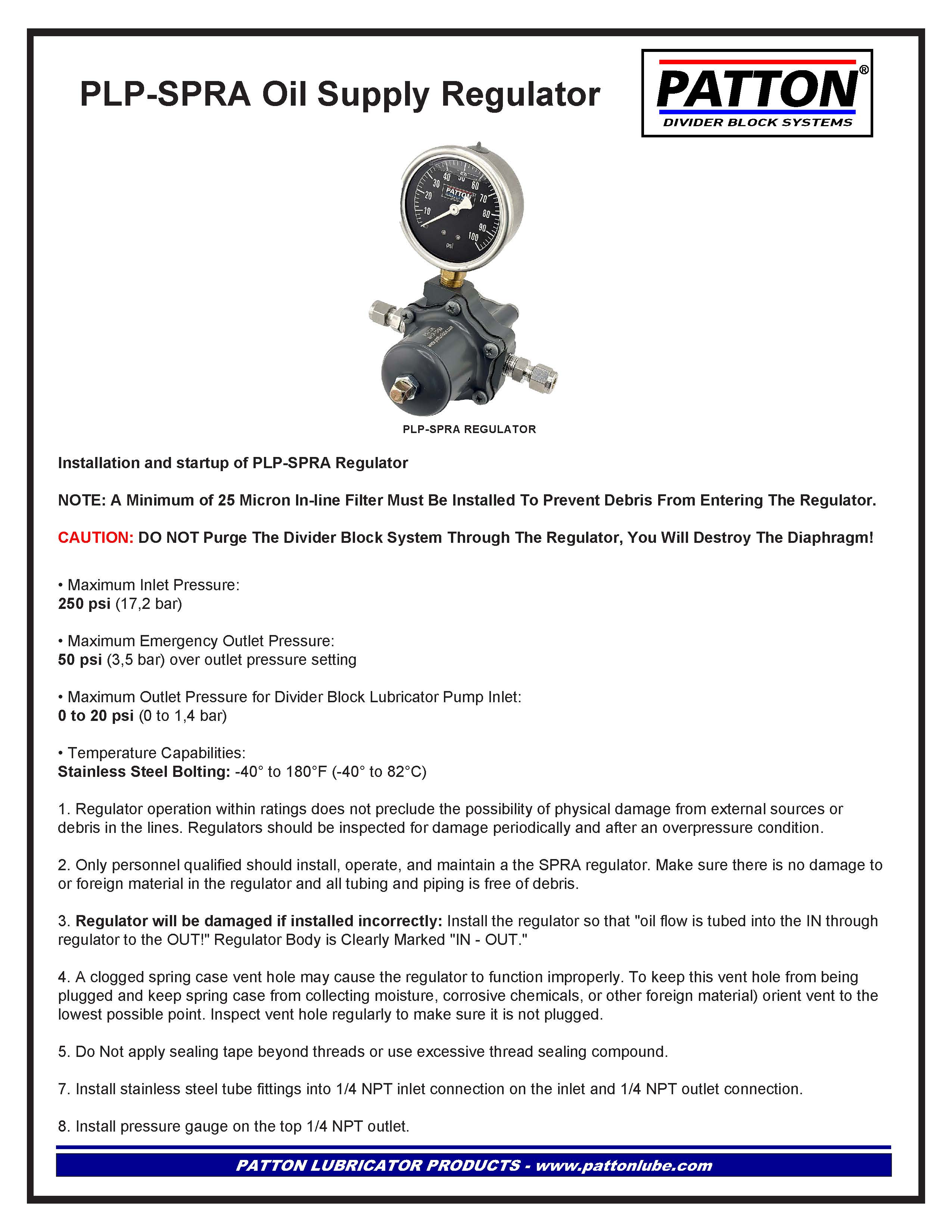 Oil Supply Regulator Installation Brochure (click to expand or contract)