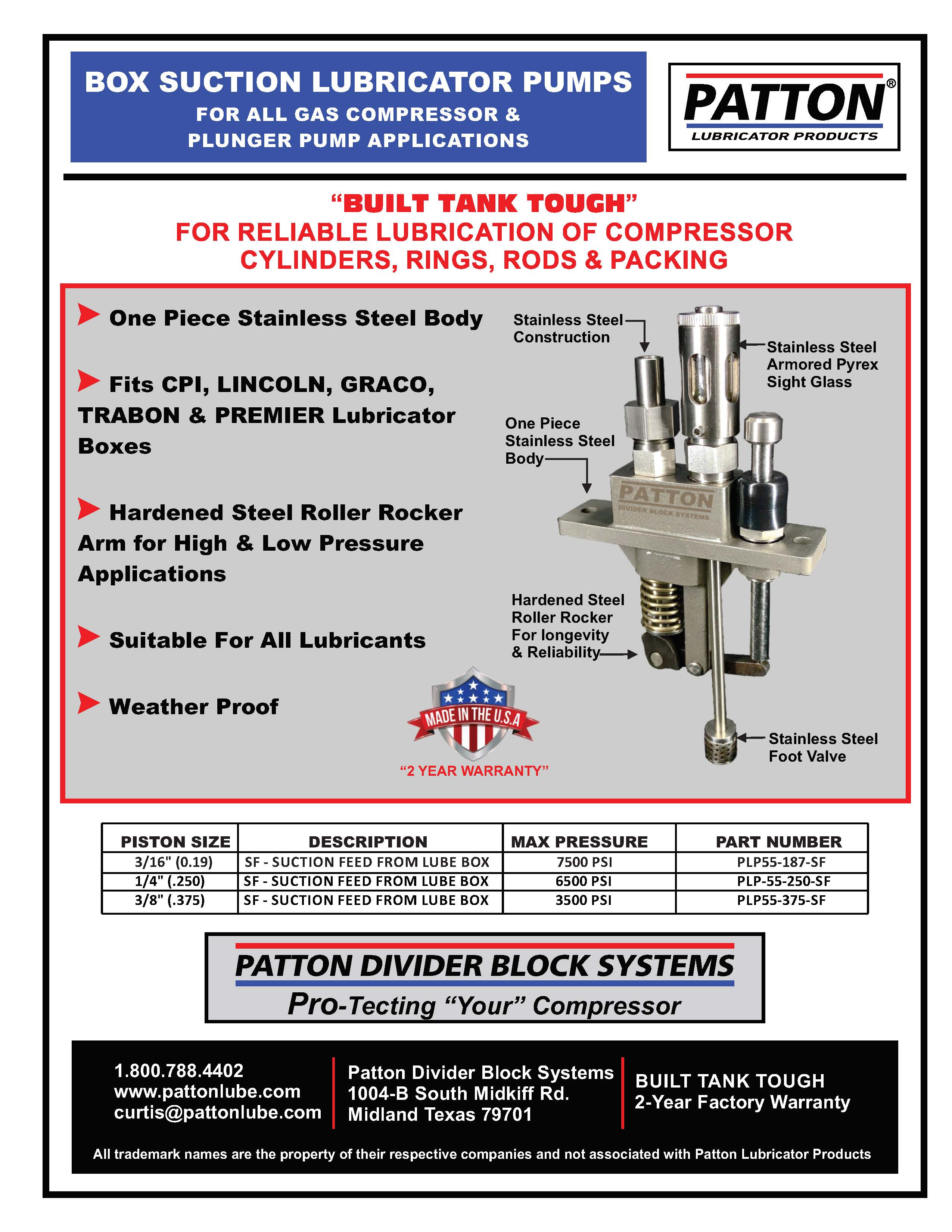 Ensures divider block pistons move fluidly and dispense the calculated volume of oil to rings, rods, packing and cylinders!